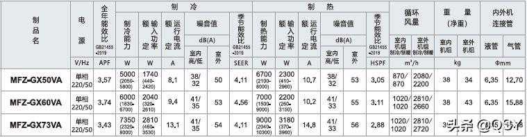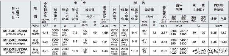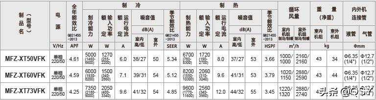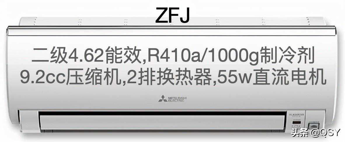 ZFJ:三菱电机非常老的一款,R410a制冷剂时代的一级能效高端机型,印象中2011年就上市了,最初是ZF系列,后来型号升级但配置没变,新国标时从老1级换标为新2级能效。