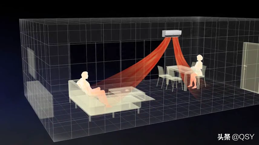 4.全域慧眼2代:内藏8个感应器,在1代精准控温基础上,将探测到的房间立体空间分成752个区域,检测人体、地面和墙壁的温度,并对其进行细致的分析,实现「风吹人」、「风避人」、「全室送风」。