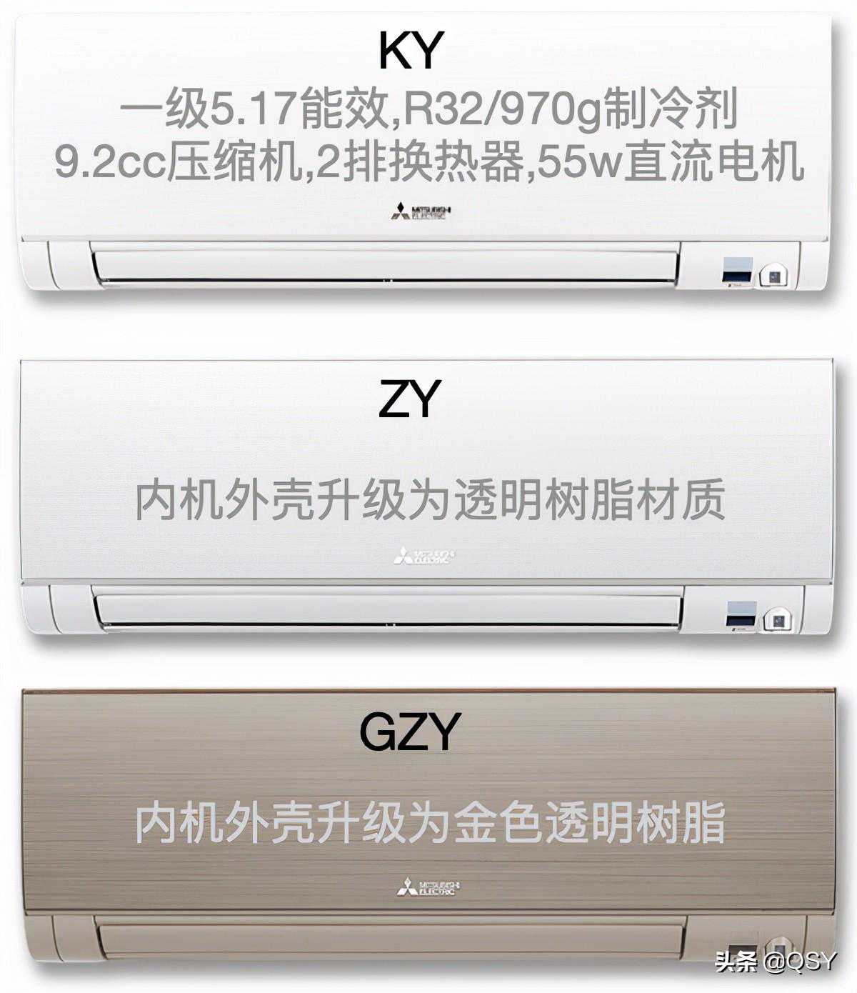ZY/GZY:和KY配置相同,只是内机外壳升级为透明树脂材料,外观显得更高级