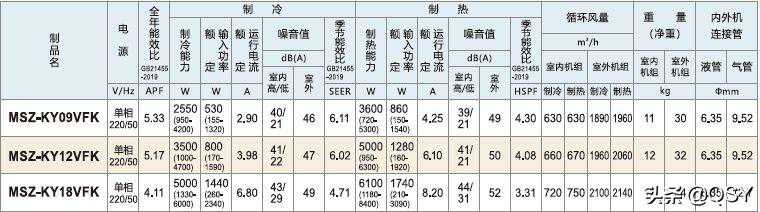 三菱电机KY系列,MSZ-KY09VFK为1匹,MSZ-KY12VFK为1.5匹,MSZ-KY18VFK为2匹
