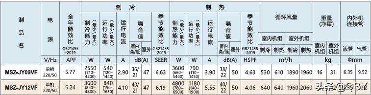 三菱电机JY系列,MSZ-JY09VF为1匹,MSZ-JY12VF为1.5匹