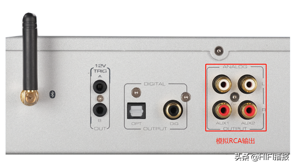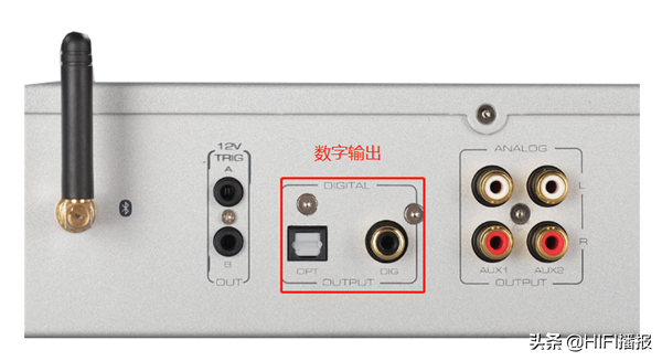 一组光纤.同轴输出,可连接更高规格解码器或者带解码设备,当数字转盘使用。