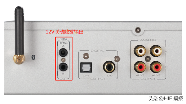 12V联动触发输出,通过3.5MM的连接线可以连接到任意带触发输入的设备,实现同步进入或者退出待机。