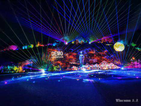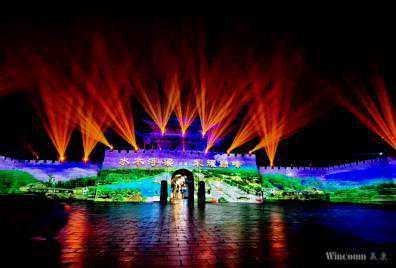 技术介绍:赢康为其完成了夜游方案策划工作,并为崖壁投影和山体投影秀出具了详细的投影设计方案和投影片源故事大纲,并为景区制作了3D影片。