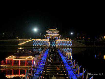 佛堂古镇万善浮桥3D灯光夜游投影秀