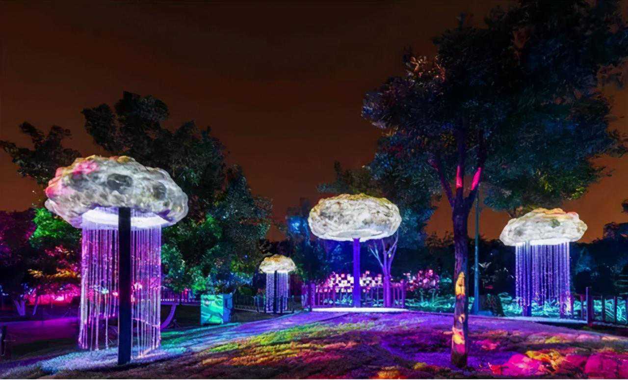首届北京国际光影艺术季占地18000平米,以“万物共生”为主题,在北京玉渊潭公园“樱落花谷”利用灯光艺术上演梦幻国度。