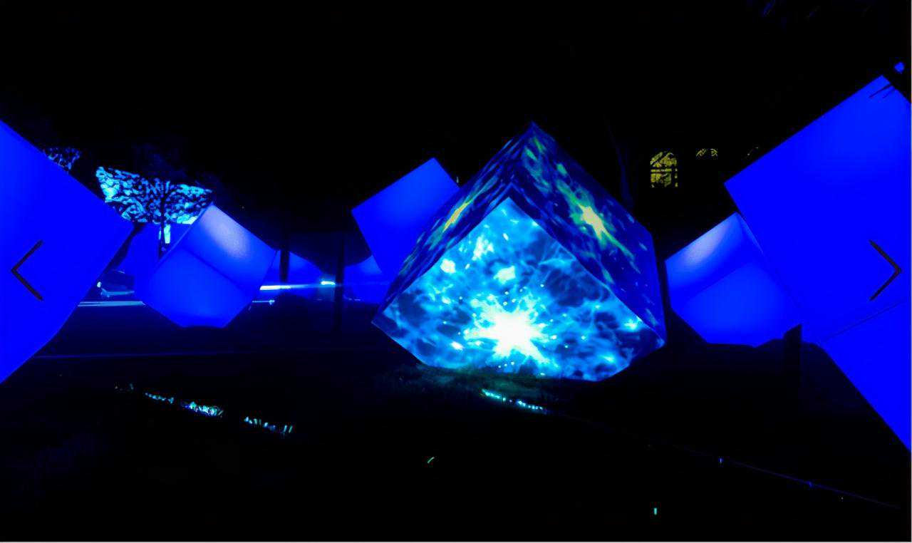 “万物共生”主题展共有15个作品区,其中有6个作品区使用到了24台Panasonic系统工程投影机设备。