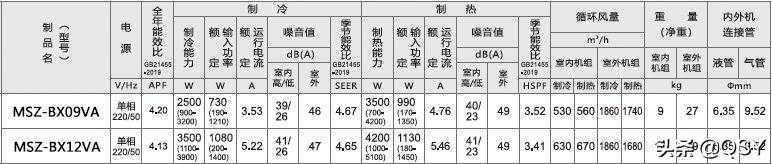 三菱电机BX系列,MSZ-BX09VA为1匹,MSZ-BX12VA为1.5匹