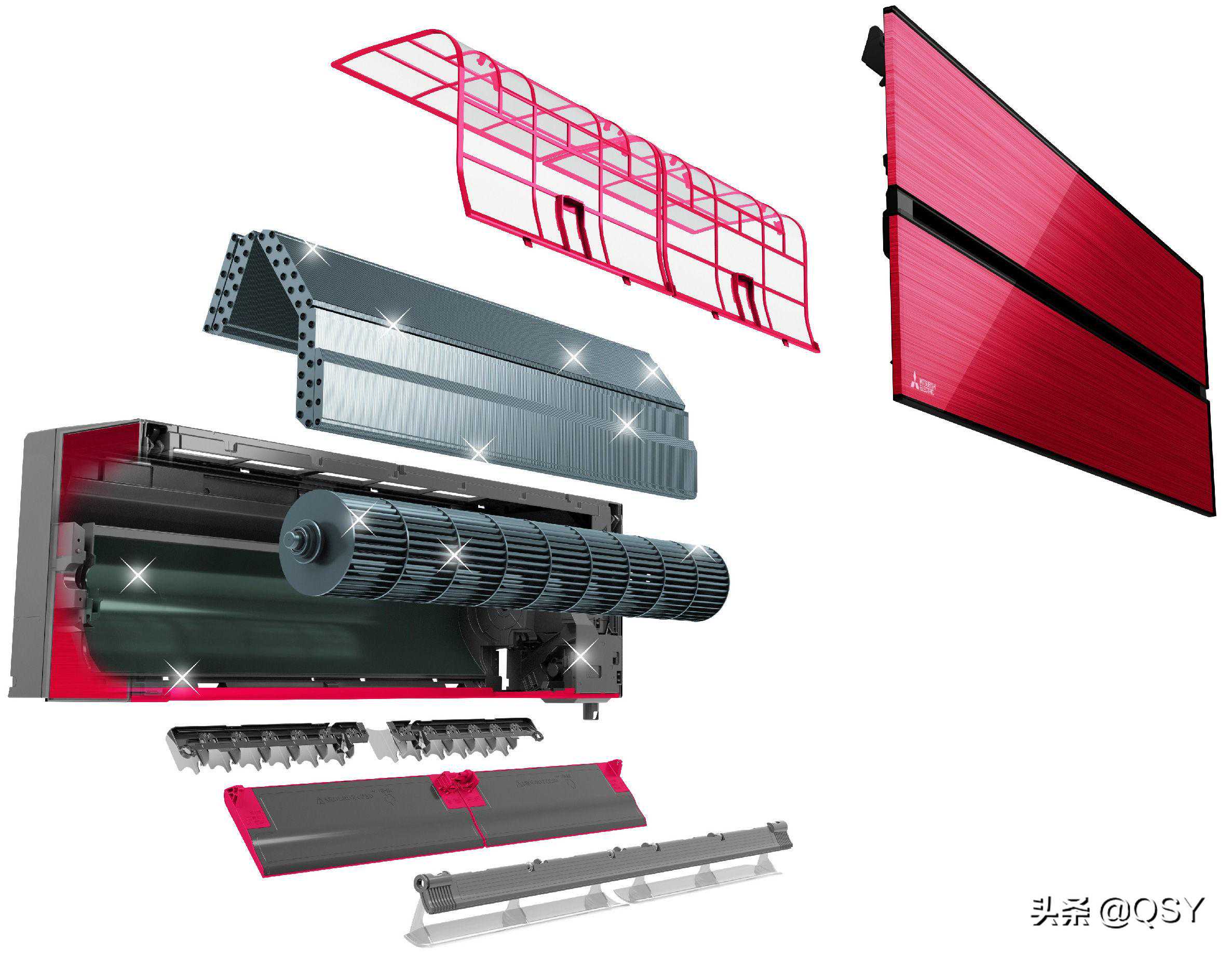 三菱电机空调「开启式清洁」,指的是导风板采用易拆装设计,容易擦洗导风板和出风口,这个设计非常实用,清洗空调滤网时也应当擦洗导风板和出风口。