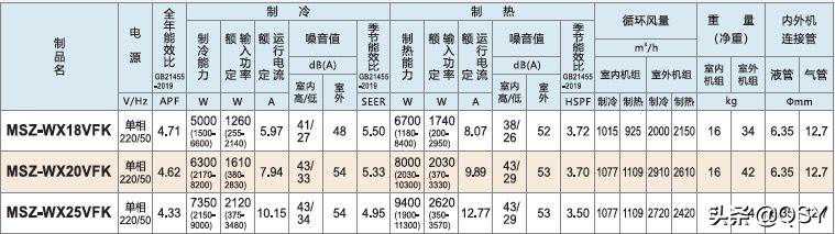 三菱电机WX系列,MSZ-WX18VFK为2匹,MSZ-WX18VFK为2.5匹,MSZ-WX25VFK为3匹