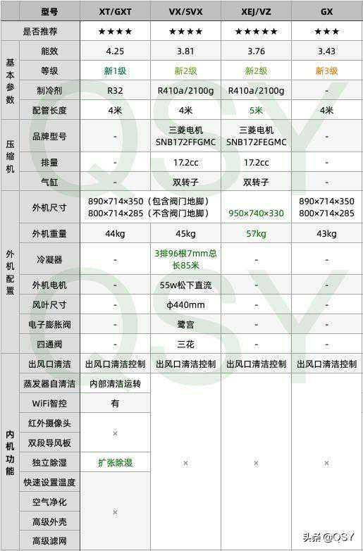 三菱电机四款柜机对比分析三菱电机空调有4款柜机,XT/GXT、VX/SVX、XEJ/VZ、GX。