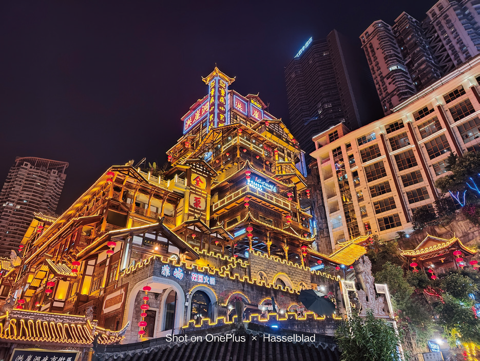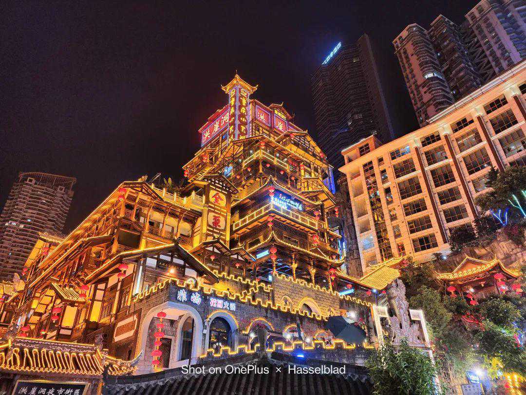 最后,终于到了夜景样张的对比环节,在这一年中,我们在太多发布会上听到了夜鹰、夜枭、夜X的算法,但到底它们的夜景表现如何呢,还是得实拍看一下。我们选择了重庆著名景点洪崖洞进行拍摄,这也是外地游客到重庆必来的景点之一。相较其他地方的夜景,复杂的木质建筑和多样的光线相当考验一款手机的拍照能力,接下来让我们看看这些手机在洪崖洞的考验下能够取得怎样的成绩吧。