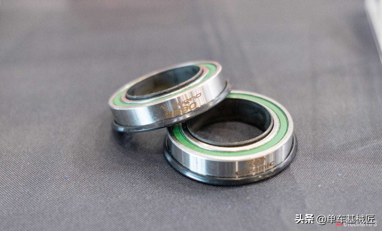 Sugino(斯基诺)一直以其曲柄和盘片而闻名,另外还提供一系列的中轴产品。上图是专门为Trek的BB90提供的陶瓷轴承。声称其集成的外部防水防尘环可以给中轴提供卓越的耐用性。不过,这些直接安装的轴承应该不会解决长时间使用而导致的吱吱作响的问题。