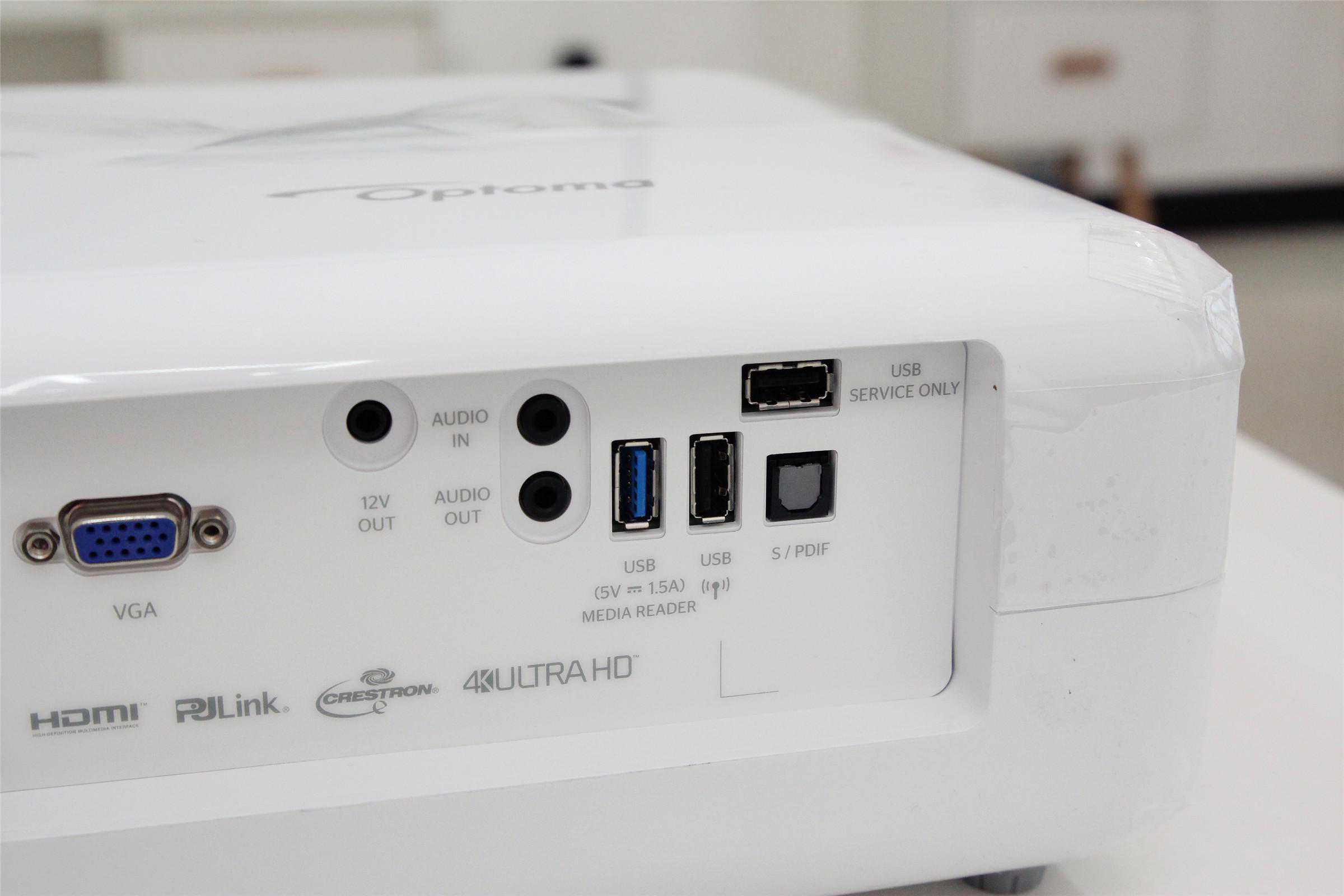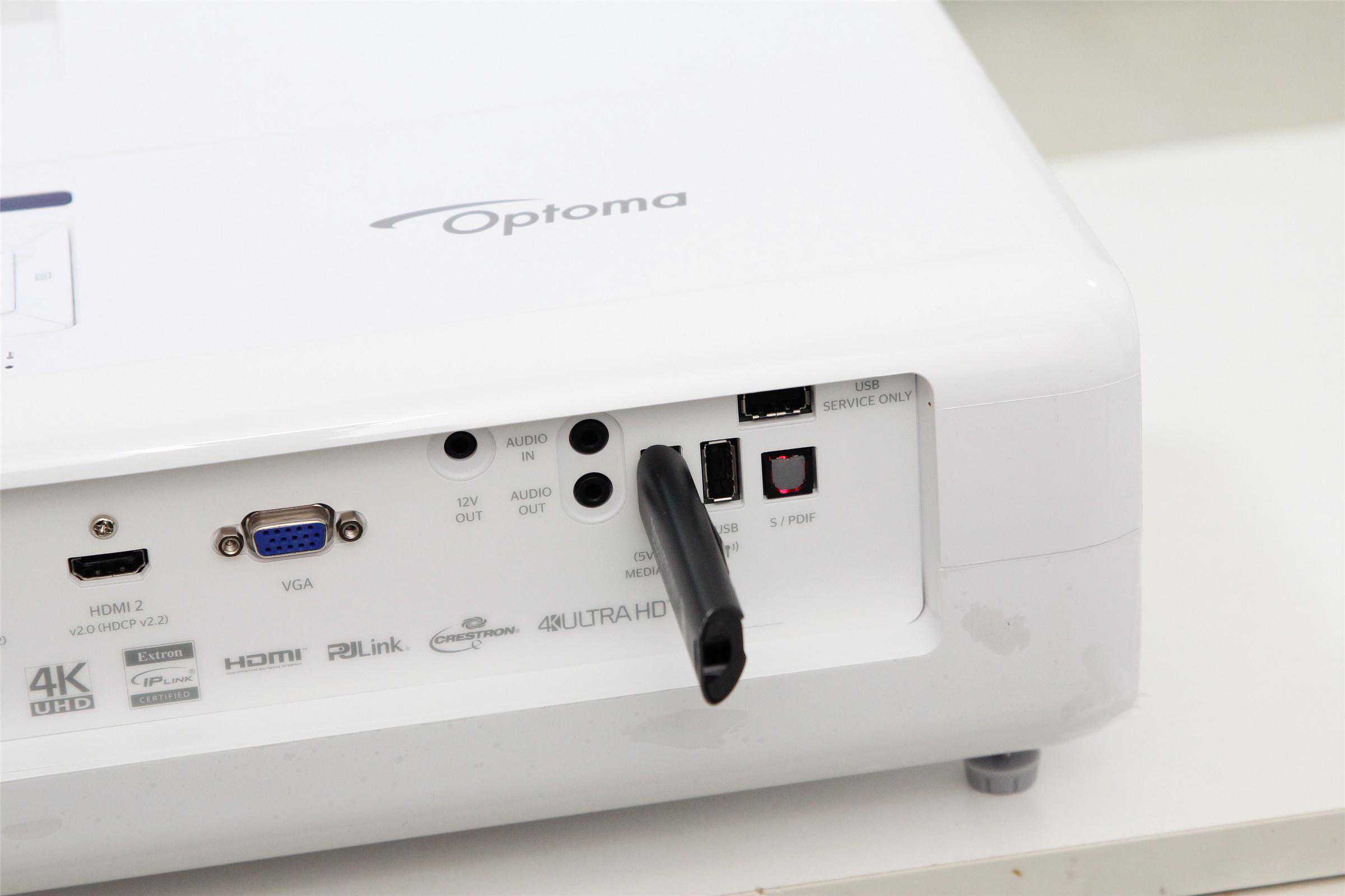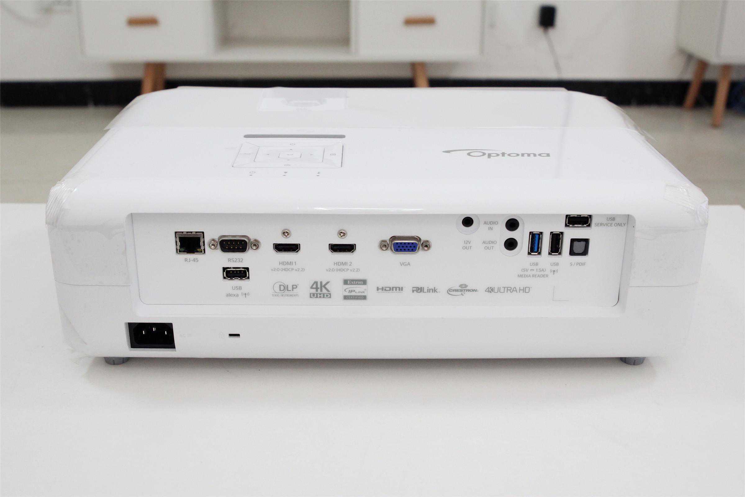 2500流明的亮度,使奥图码UHD566不仅可以作为家用投影仪,也能作为商务投影仪。因此UHD566后背丰富的接口会让用户获得更好的使用体验,在使用时也完全不用担心接口不够用。2个接口支持规范,同时为了照顾到小部分用户的需要,支持1080p的VGA接口也得以保留,甚至还有少见的RS232接口,而RJ-45网络接口则方便用户在无线信号不好的环境下连接网线变身网络投影仪。