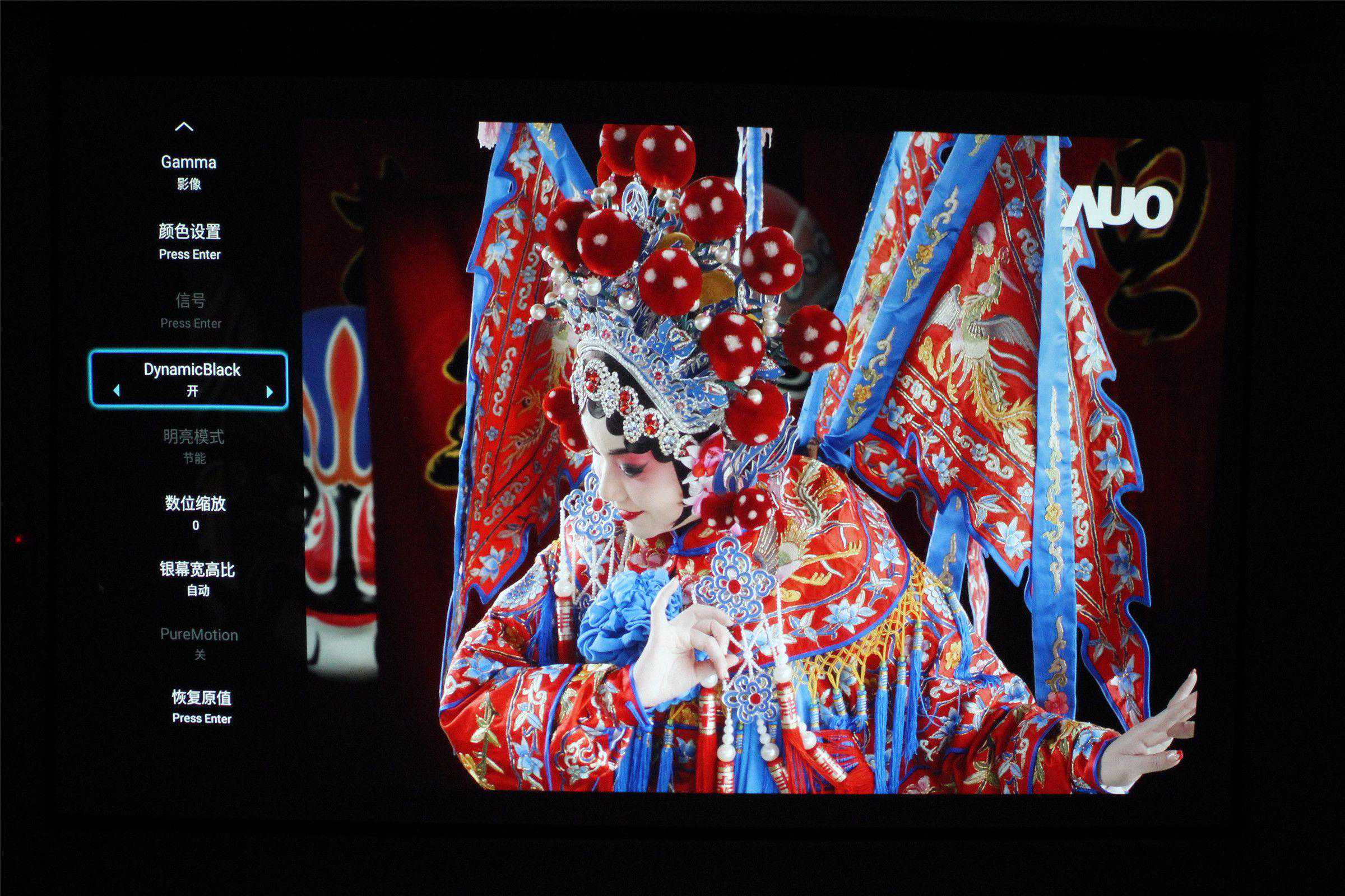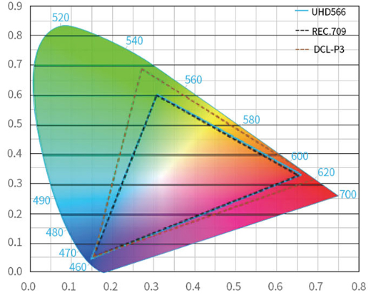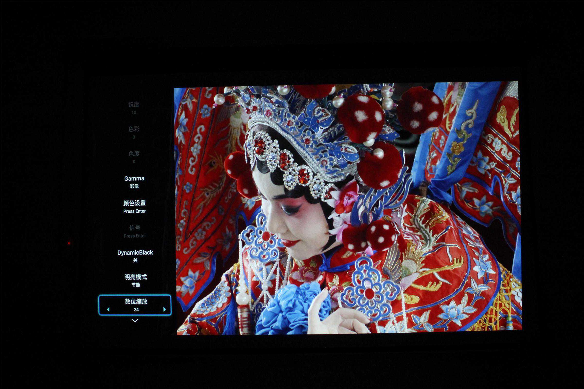 色彩方面,UHD566采用RGBRGB六段黄金色轮设计,色域表现符合国际HDTV的色域标准,同时系统内置影像微调、多种色温和Gamma模式,可以对不同的影视、游戏画面微调色彩、亮度、伽马、色温,从下图大家也可以看出,不同伽马值的画面表现也不太一样,但总体颜色纯正、色彩真实,对比度适中是没有问题的。