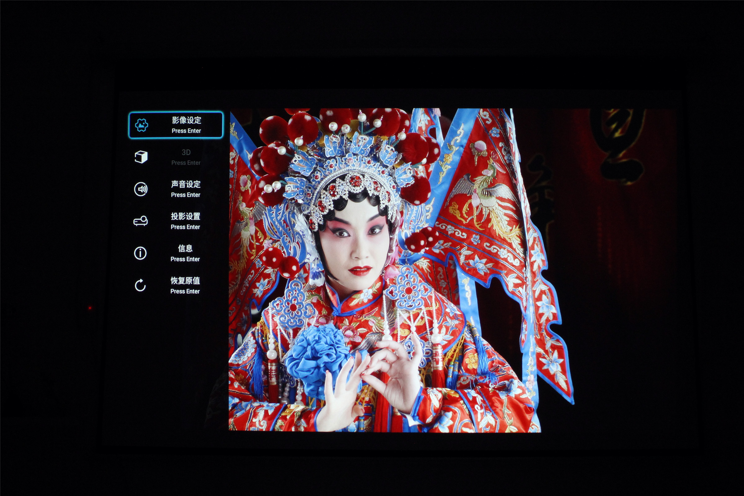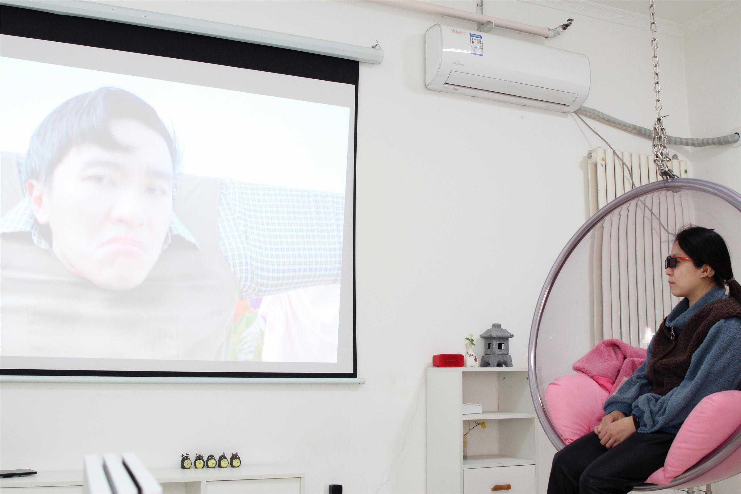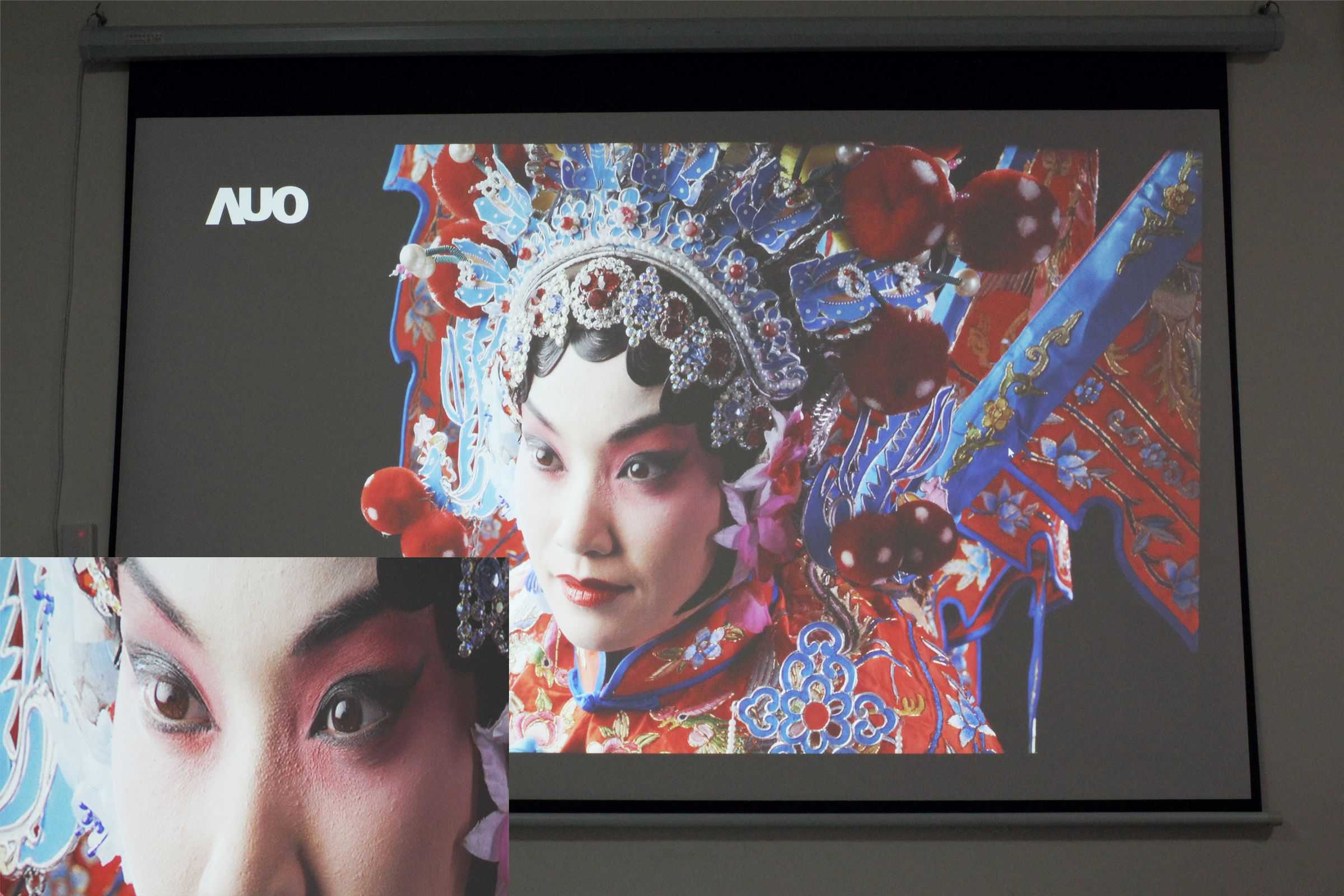 黑暗环境下的表现毋庸置疑,那么开灯或晴天等亮度高的环境下如何呢?以下午2点多晴间多云的天气为例,奥图码UHD566的色彩表现还是到位的,人物脸部放大也可以看到毛孔和粉底的细节,这是老式微投远远不能表现出来的。