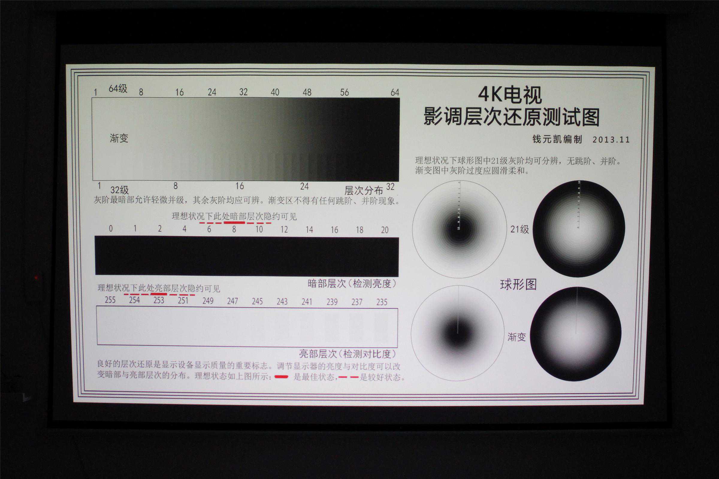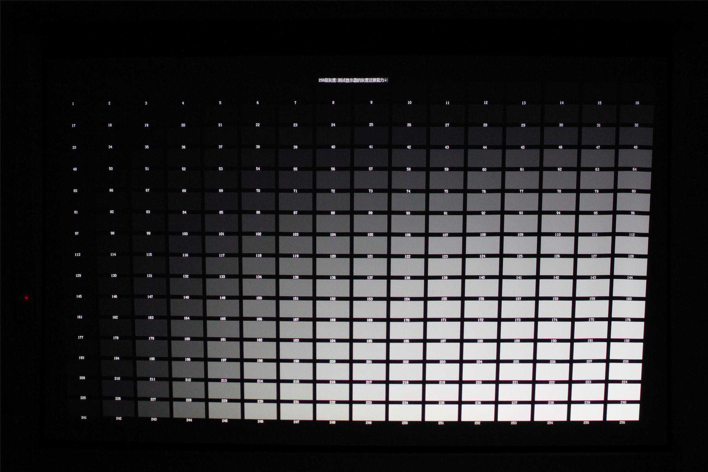 灰度还原能力测试,得益于高对比度,奥图码UHD566在灰阶的表现方面很出色,第三级已经可以明显的看出色块细节了,由于相机拍摄的原因可能看不出,实际观看只要视力正常,看出细节那是没问题的。