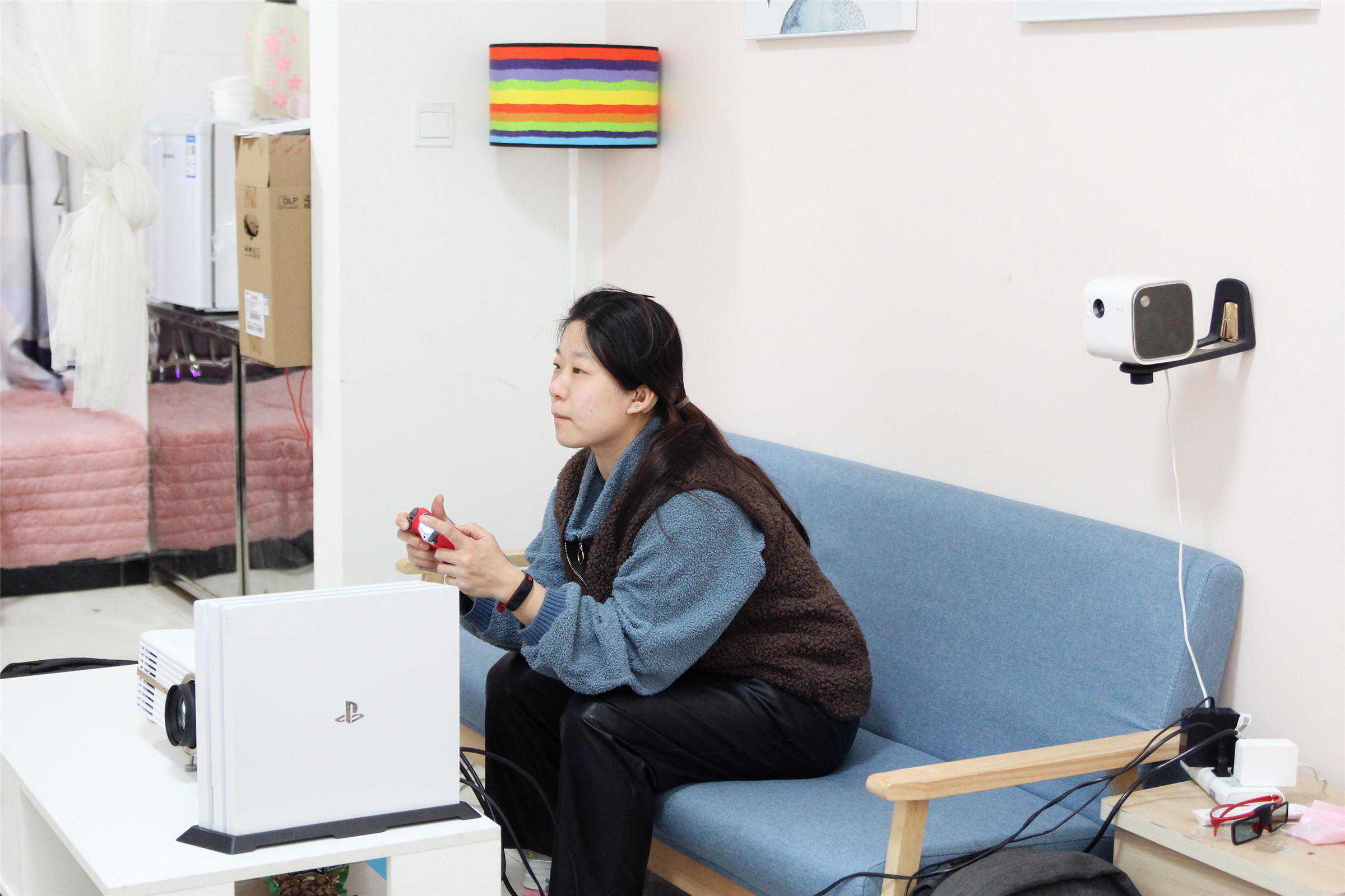 从下图可以看到,得益于2500流明的亮度,哪怕在开灯、阳光房等亮度高的环境下投影,效果也比原来的微投好不少,尤其是在黑暗环境下,色彩饱和度和亮度都比较高,观看大片小房间也能营造出影院的氛围,充分显示了4K分辨率的实力。