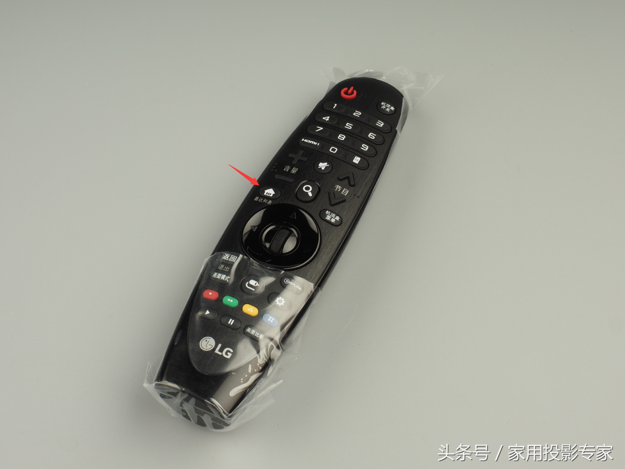 PF1000UW-CH的遥控器的造型很特别,握感不错。在我们看到的微投或者激光电视的遥控器都在朝简化方向发展按键很少,而PF1000UW-CH的按键应该是继承欧美的传统,按键很多。不过初期的体验中,我就发现了其按键多的主要原因——因为它可以学习其他遥控器,当做万能遥控器使用。图中的箭头按键是主页键,按此可以呼出PF1000UW-CH的内置智能系统菜单。