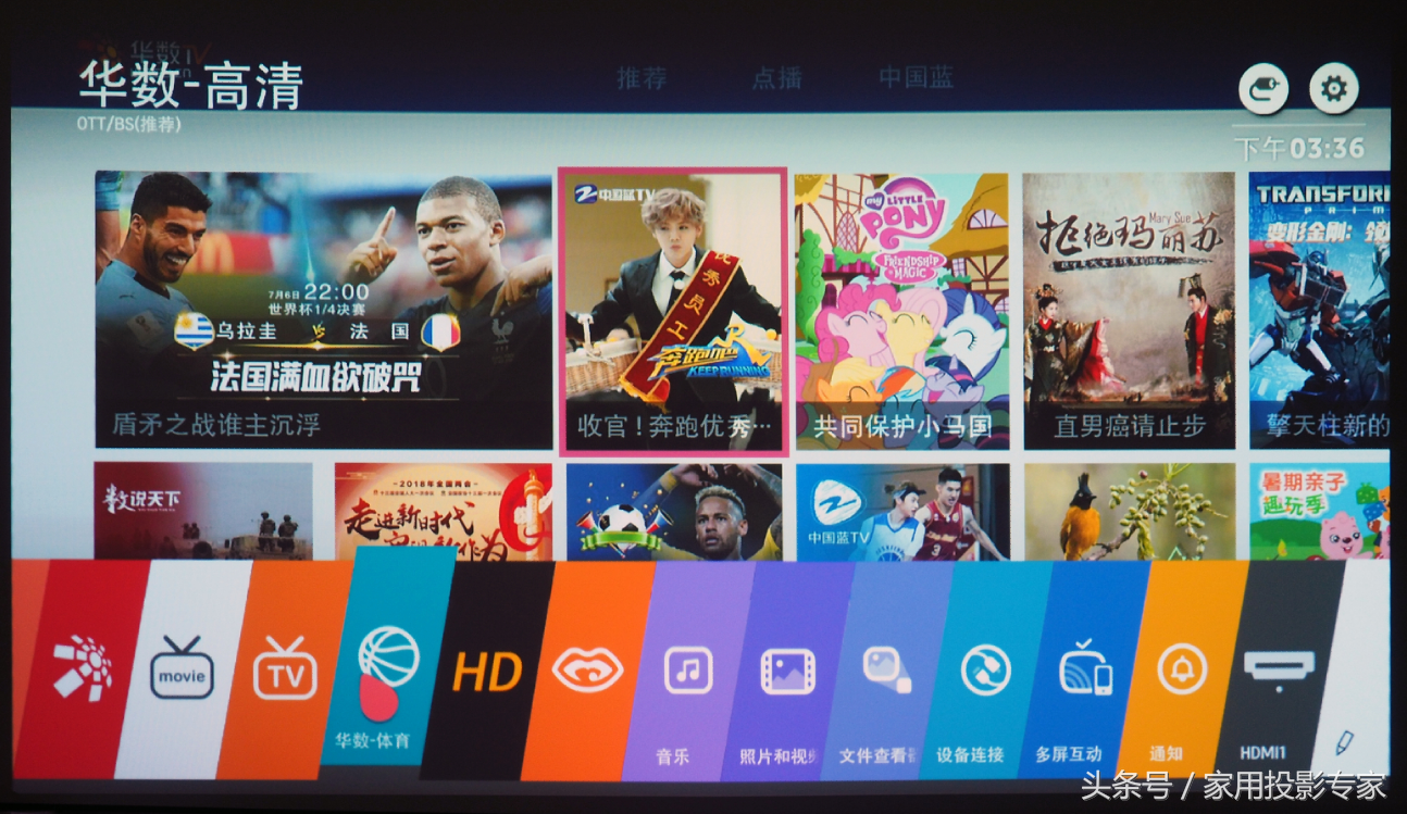 上图最下面一排就是PF1000UW-CH的智能系统菜单。是不是跟国内很多微投的系统界面完全不一样,应该属于两种不同的设计理念。