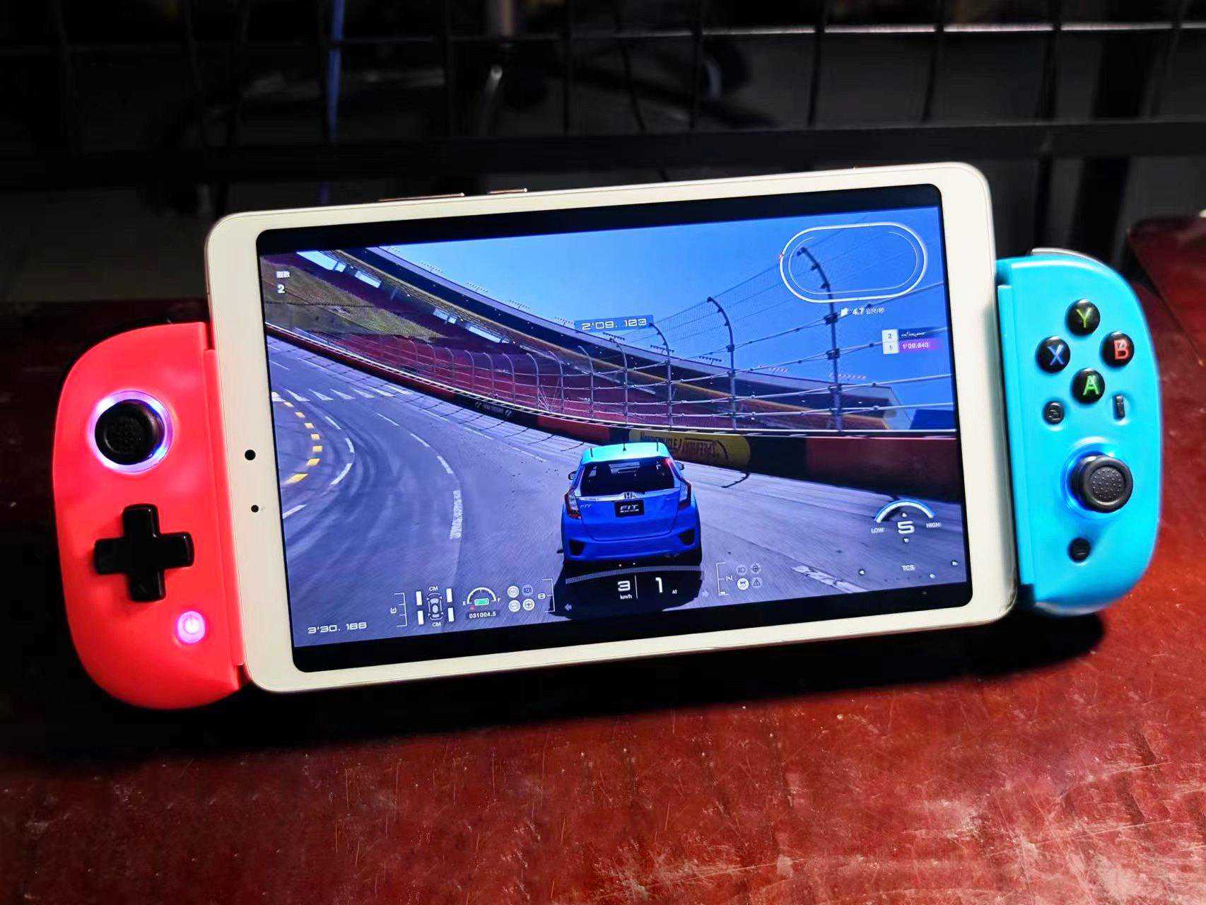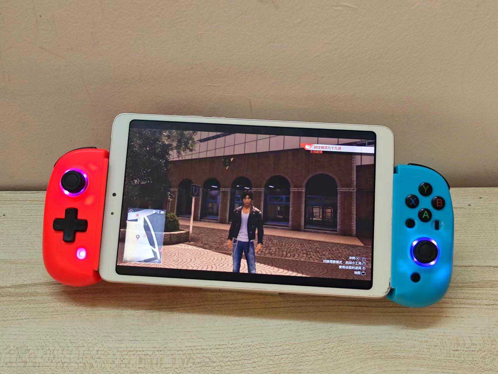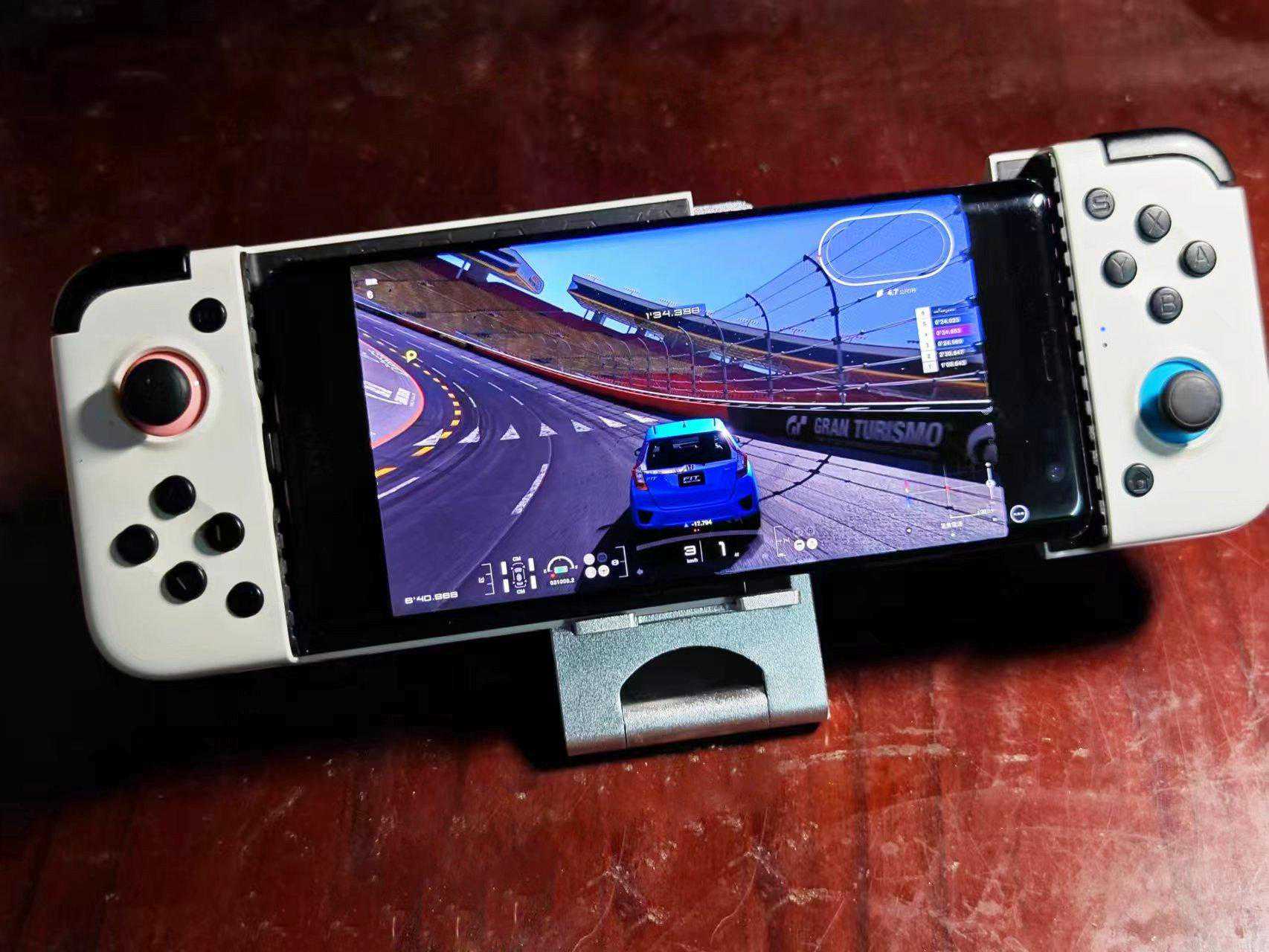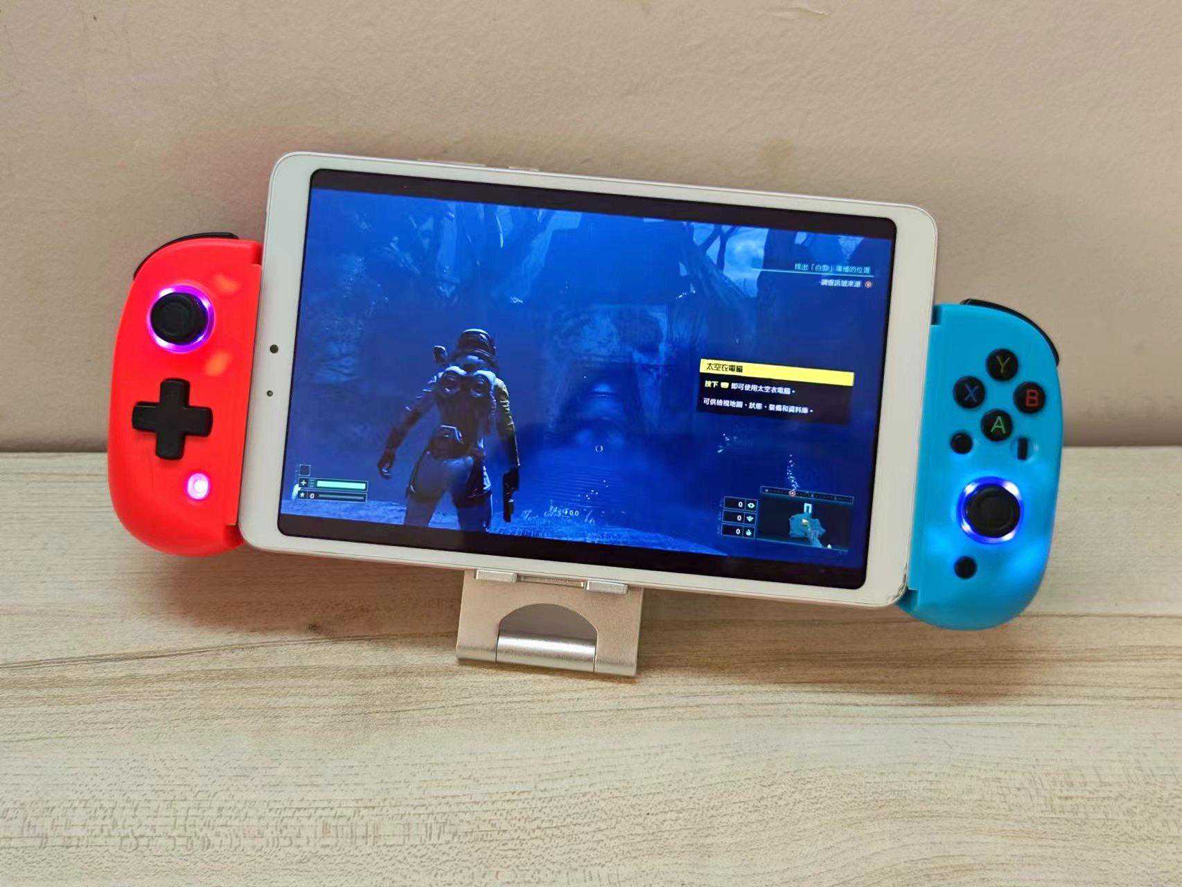 D8拉伸手柄相对好了不少,不仅有霍尔扳机、支持陀螺仪,而且还能支持简单的马达振动,特别是自带的两段拉伸模式,让它可以轻松兼容8.4寸左右的平板电脑,实现和PlaystationPortal类似的显示效果。