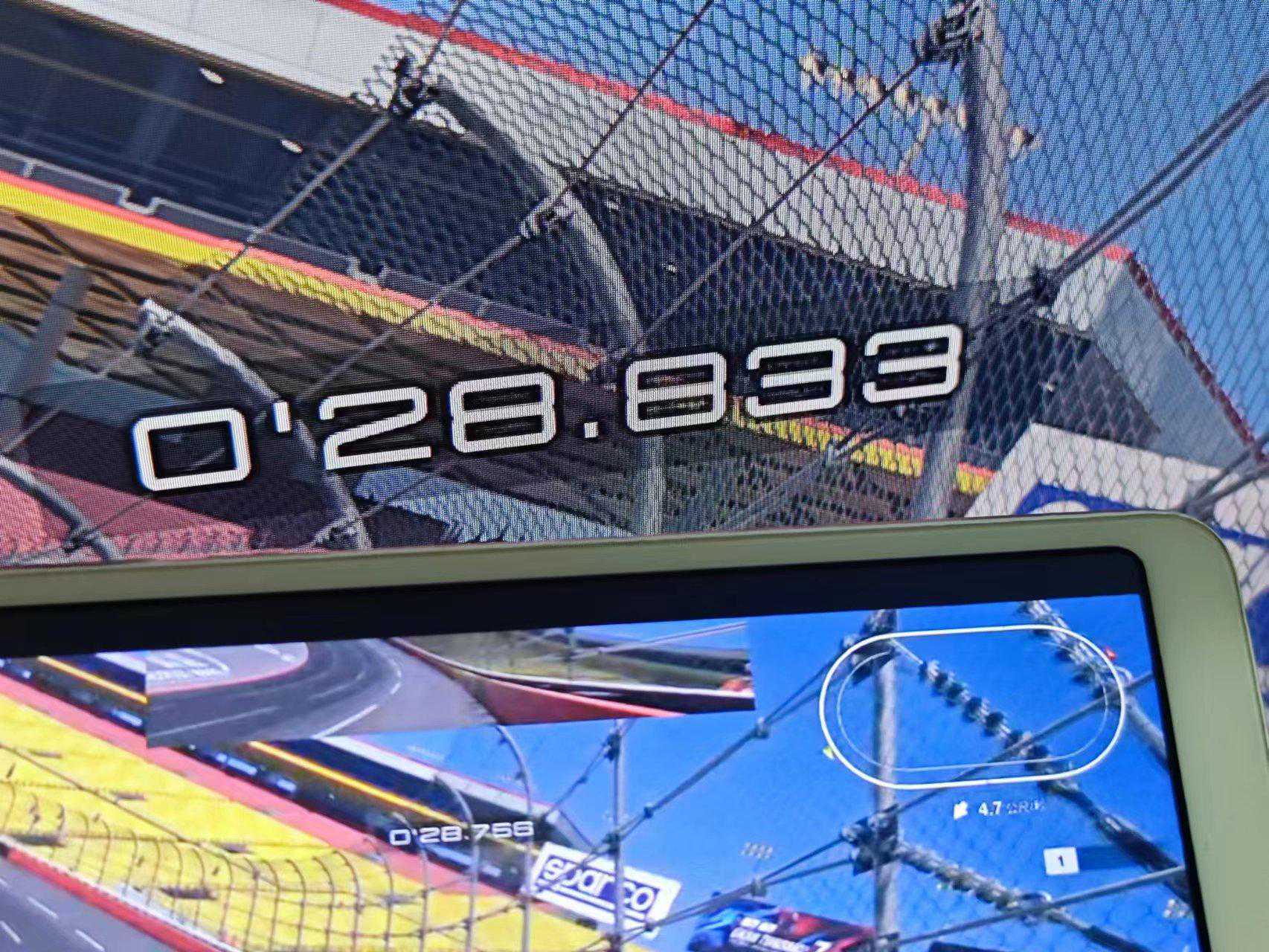 在家庭网络环境中,基于《GT赛车7》里计时赛的UI显示,我们可以看到小米平板4的串流延迟是80ms。